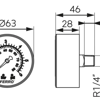Manometrul 63 mm, racord 1/4", montaj axial, 0–6 bari este un instrument mecanic utilizat pentru măsurarea presiunii în instalații sanitare, termice sau sisteme de aer comprimat.