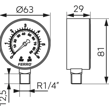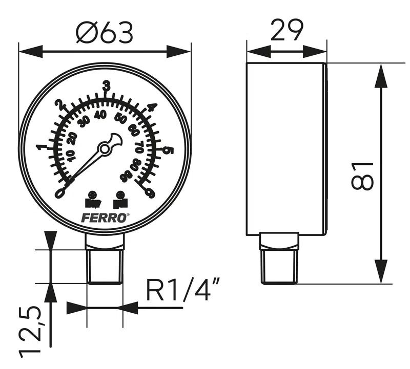 Manometru 63 mm 1/4" radial, 0-6 bari