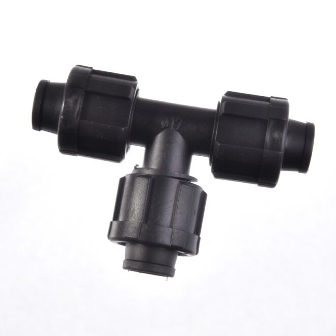 Teul pentru bandă de picurare d17 este un conector utilizat în sistemele de irigații prin picurare, destinat ramificării conductei principale în două direcții. Se folosește pentru conectarea rapidă și sigură a benzilor de picurare cu diametrul de 17 mm, oferind o etanșare excelentă și o durabilitate ridicată. Este ideal pentru grădini, culturi agricole, sere sau solarii.