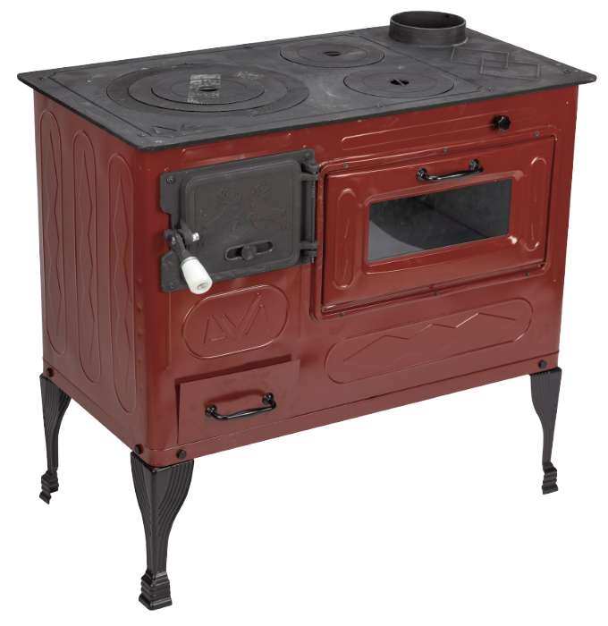 Sobă de gătit Tip A, finisaj maro email, model cu deschidere pe dreapta (DR). Este realizată din materiale rezistente, cu plită din fontă, potrivită atât pentru gătit, cât și pentru încălzirea locuinței. Emailul maro îi conferă un aspect clasic și protecție suplimentară împotriva uzurii.