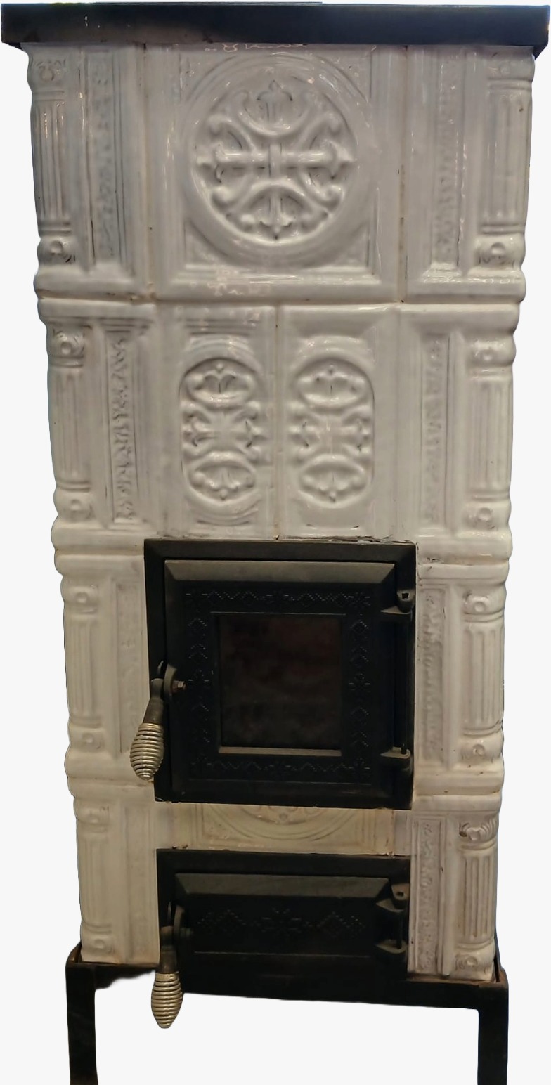 | Material | cahle de teracotă smălțuită, cărămidă refractară, plită din fontă |