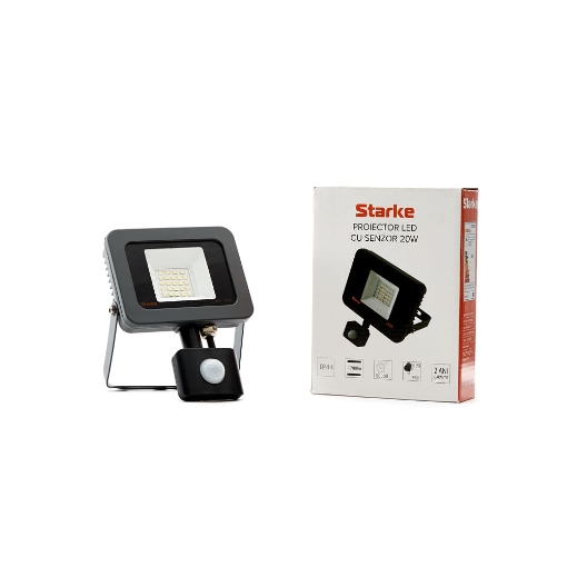 Proiectorul LED Starke de 20W cu senzor de mișcare este ideal pentru iluminatul exterior automat, activându-se doar la detectarea mișcării. Oferă lumină rece de 6500K și flux luminos de 1700 lm, asigurând vizibilitate clară și siguranță în curți, alei, grădini sau spații comerciale. Gradul de protecție IP44 îl face rezistent la stropi de apă.