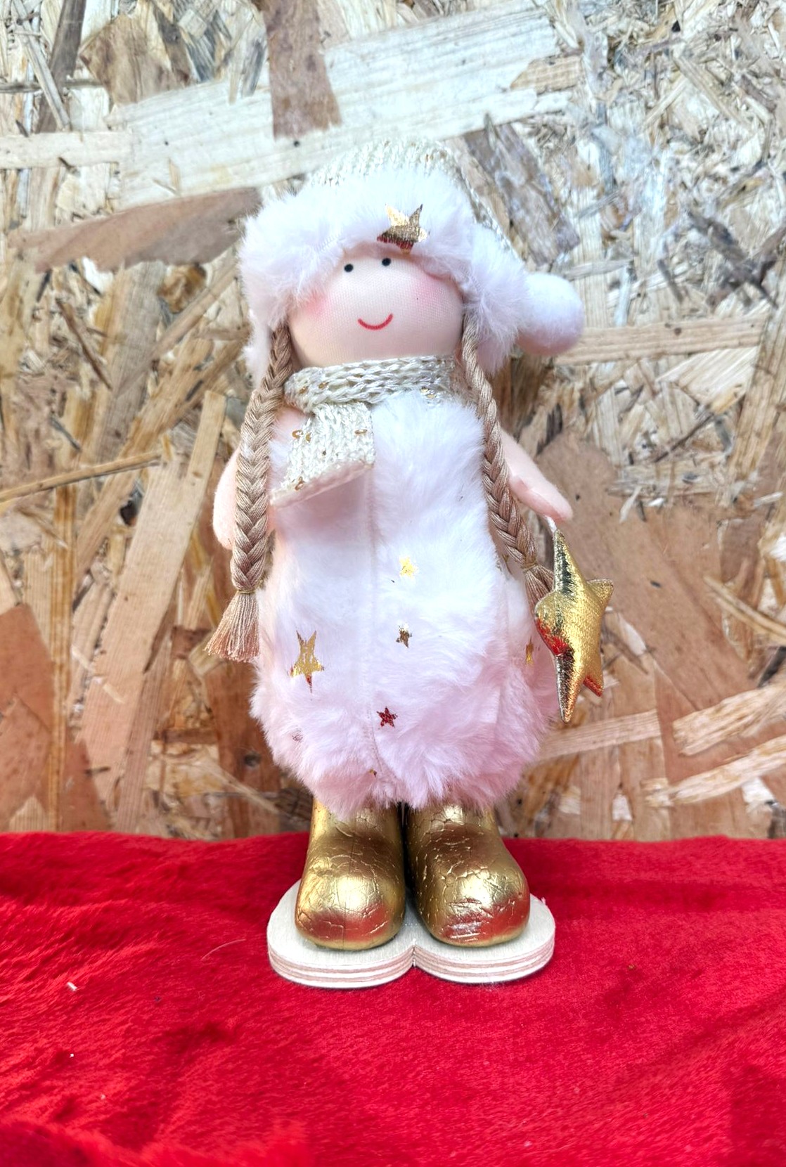 Îngerașul prințesă de Crăciun este o decorațiune fermecătoare, creată pentru a adăuga eleganță și strălucire decorului festiv. Realizat din materiale textile fine, cu detalii delicate, rochiță stilată și aripi decorative, acest îngeraș combină magia sărbătorilor cu farmecul unei prințese. Expresia blândă și accentele strălucitoare îl transformă într-un ornament deosebit, ideal pentru orice spațiu.