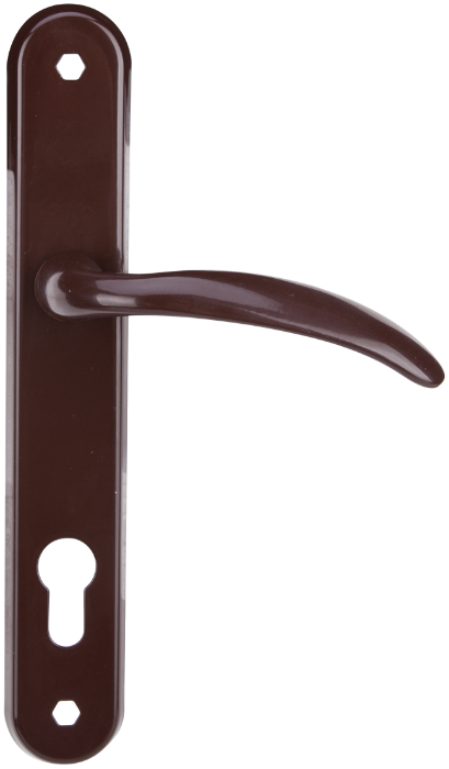 Mânerele Wave cu șild tip Y, lungime 85 mm, culoare maro sunt accesorii pentru uși interioare, cu design modern și formă ergonomică. Șildul de tip Y este destinat ușilor cu broască cilindru (tip „yala”), acoperind elegant zona mecanismului și oferind protecție suplimentară.