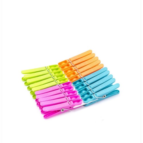 Set de 24 cârlige de rufe, cod A06376, concepute pentru agățarea și fixarea hainelor pe sârmă sau uscător. Fabricate din plastic rezistent și arc metalic durabil, asigură prindere fermă și stabilă a rufelor, indiferent de greutate sau grosime.