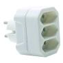 Adaptor triplu cu 2 pini, fără contact de protecție (fără împământare), cu dispunere verticală. Permite conectarea simultană a mai multor consumatori electrici de mică putere, fiind ideal pentru utilizare casnică.