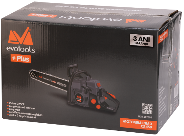 Motoferăstrăul Evotools Plus CS 450 este o unealtă puternică și fiabilă, destinată lucrărilor de tăiere a lemnului în gospodărie, construcții și activități forestiere ușoare. Cu un motor de 2.9 CP, acest model oferă performanță constantă și eficiență ridicată, fiind ideal pentru tăierea lemnelor de foc, a crengilor sau a trunchiurilor de dimensiuni medii.