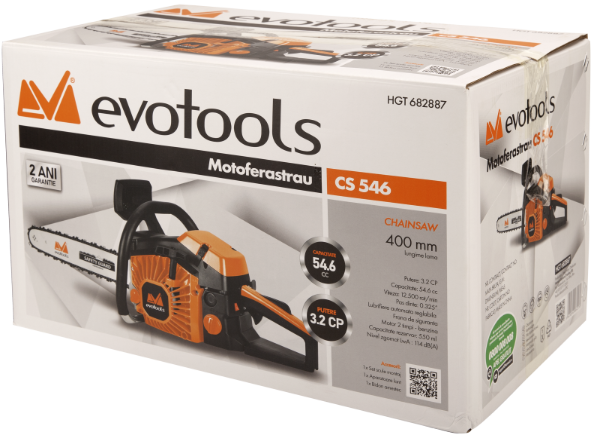 Motoferăstrăul Evotools CS 546 este conceput pentru lucrări de tăiere eficiente și precise, fiind echipat cu un motor de 3.2 CP și o lamă de 400 mm. Este o unealtă puternică și fiabilă, destinată atât gospodăriilor, cât și lucrărilor semi-profesionale. Datorită construcției robuste și sistemelor de siguranță, acest model asigură performanță și durabilitate.
