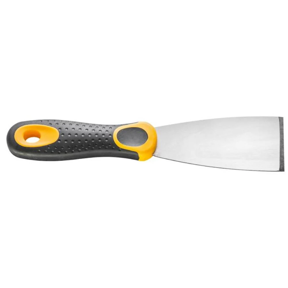 Șpaclu 6 cm cu mâner din lemn este o unealtă practică și versatilă, ideală pentru aplicarea gletului, chitului sau mortarului fin, dar și pentru răzuirea și curățarea suprafețelor. Lama din oțel rezistent oferă flexibilitate și durabilitate, iar mânerul ergonomic din lemn natural asigură priză sigură și confort, fiind potrivit pentru lucrări de finisaj profesionale sau DIY.