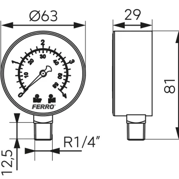 Descriere: Manometrul radial cu diametrul cadranului de 63 mm și racord inferior de 1/4”, este un instrument analogic utilizat pentru măsurarea presiunii în instalații de joasă presiune. Manometrul radial 63 mm, 1/4”, 0–4 bari, este alegerea optimă pentru aplicații unde este necesară măsurarea precisă a presiunilor mici. Este foarte utilizat în instalațiile domestice și tehnice, fiind simplu, fiabil și economic. Acesta funcționează pe baza tubului Bourdon, fiind potrivit pentru apă, aer și alte fluide neagresive. Racordul radial (în partea de jos) permite montajul direct pe conducte, distribuitoare sau echipamente. Caracteristici si beneficii: Specificatii tehnice: Utilizari uzuale: Imaginile prezentate au scop informativ. Culoarea si textura produselor din magazin pot varia datorita procedeelor foto sau variatiilor de fabricatie ale producatorului.