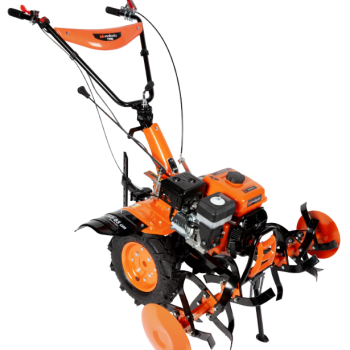 Motocultorul T700 Evotools este un echipament robust și eficient, conceput pentru lucrările agricole de prelucrare a solului. Cu un motor puternic de 7 CP, acest motocultor poate lucra suprafețe mari de teren, oferind o afânare uniformă și pregătire optimă pentru cultivare. Este dotat cu roți de transport, ceea ce îl face ușor de manevrat și deplasat chiar și pe distanțe mai lungi. Motocultorul T700 Evotools este recomandat pentru aratul suprafetelor mari de teren. Motor puternic de 7CP/3600rpm pe benzina, 4 timpi racit cu aer In timpul utilizarii, purtati echipament de protectie adecvat! Nu utilizati unealta in zonele cu potential exploziv, de exemplu in prezenta lichidelor, gazelor sau particulelor inflamabile. Uneltele electrice genereaza scantei care pot aprinde aceste materiale. Nu lasati copiii sau persoanele neautorizate in zona de lucru. Distragerea atentiei poate cauza pierderea controlului uneltei. Produsul este in conformitate cu standardele de siguranta europene! Pentru siguranta dumneavoastra, cititi manualul de utilizare al produsului! Evitati pornirile accidentale ale uneltei. Nu suprasolicitati unealta ! Masina poate fi folosita in conditii de siguranta daca sunt respectati parametrii de exploatare care o caracterizeaza. Predati produsul doar centrelor autorizate de colectare si reciclare DEEE" Imaginile prezentate au scop informativ. Culoarea si textura produselor din magazin pot varia datorita procedeelor foto sau variatiilor de fabricatie ale producatorului.Descriere: